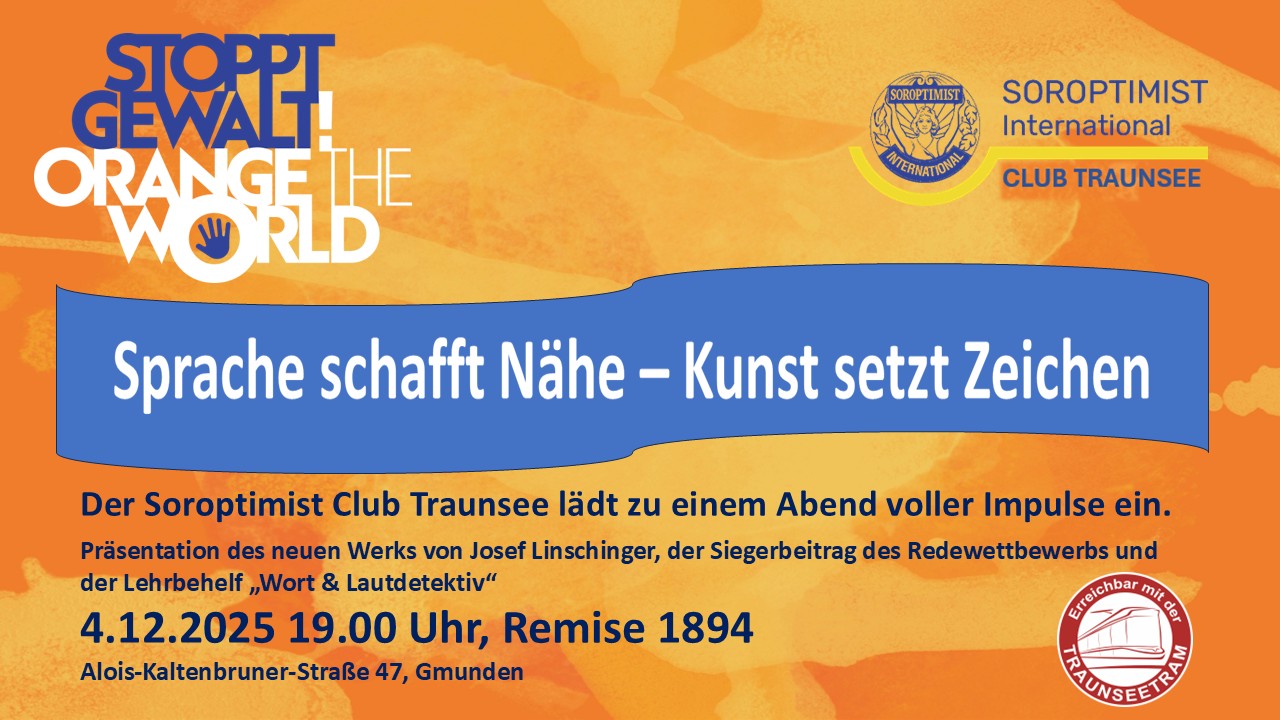Der Soroptimist Club Traunsee lädt zu einem Abend voller Impulse ein. Sprache und Kunst tragen zur Gewaltprävention bei.